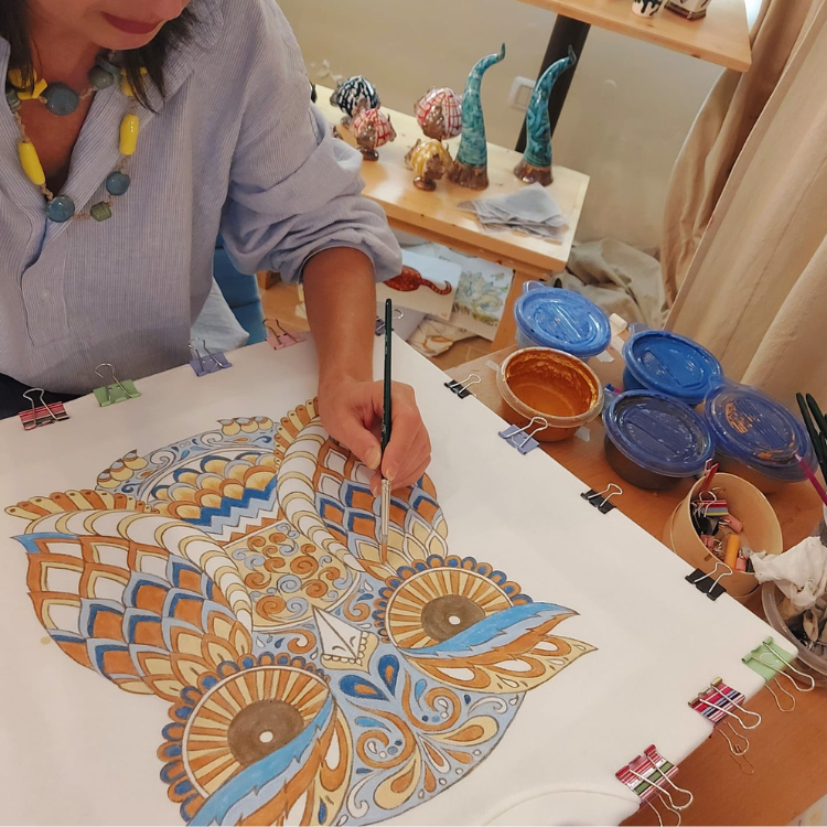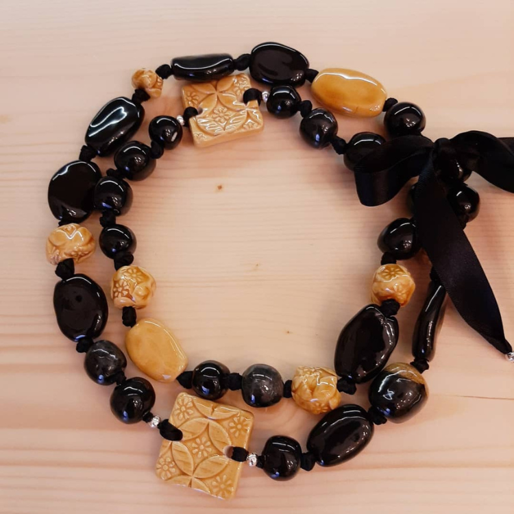 In addition, Alfieri Maioliche creates handcrafted clothing and bags, as well as necklaces, earrings, and bracelets made with ceramic elements that are hand-shaped and glazed.
