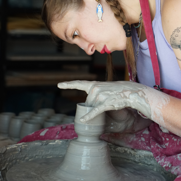 All the pieces are created on the pottery wheel, with the japanese technique neriage, featuring a mix of different clays, which create a unique pattern on each vessel.