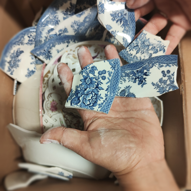 Fragments of old dishes and ancient treasures that become new and unexpected creations.