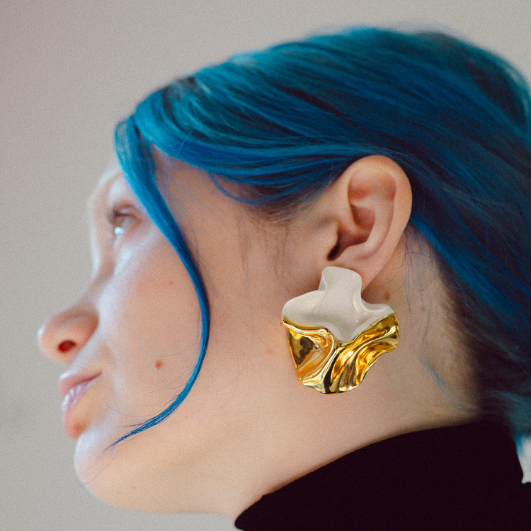 Pepaflaca is a jewelry studio, handmade with white clay and decorated with a layer of liquid gold