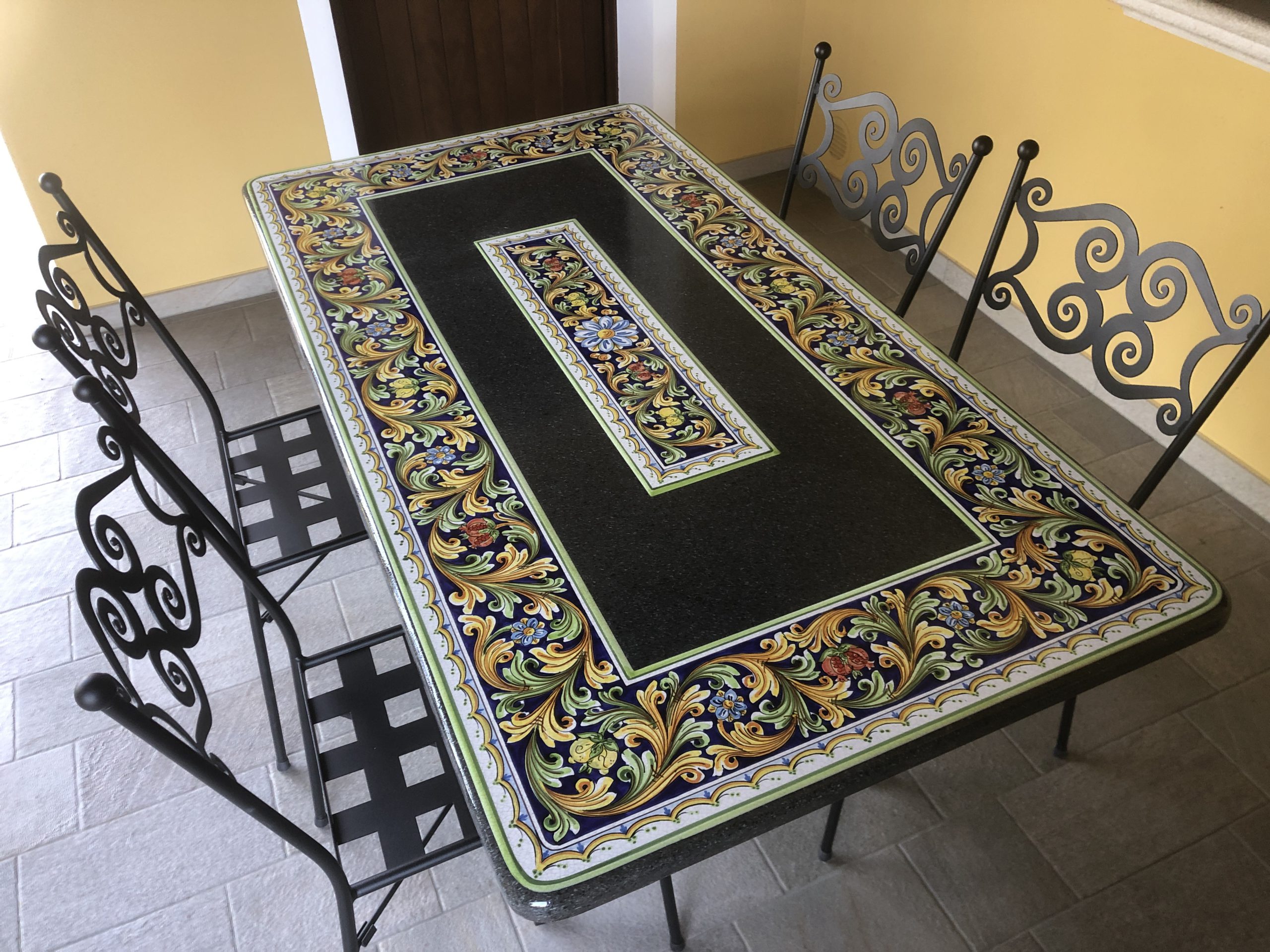 The lava stone, together with the precious Ceramica di Caltagirone, is a material with unique characteristics. Indoor and outdoor tables are the top product of the laboratory: hand-decorated and indestructible, resistant to temperature changes, stain and antacid.