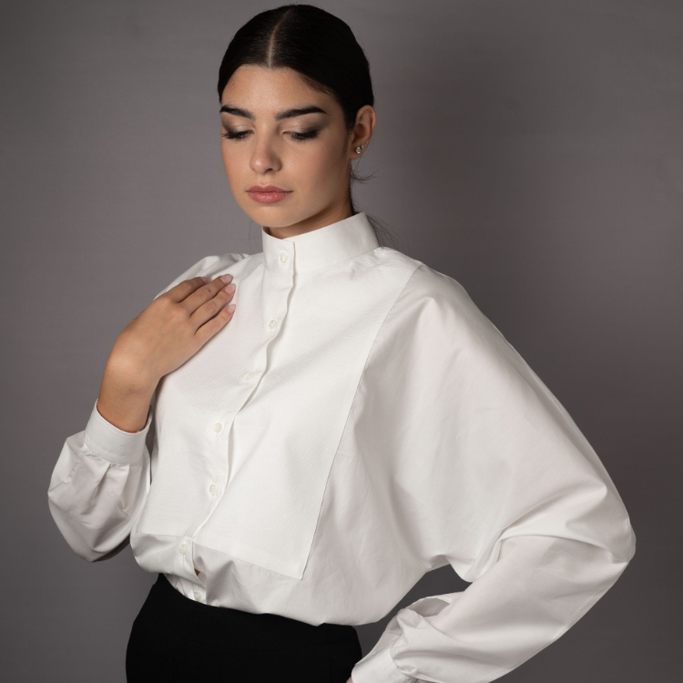 Brand di camicie da donna di design realizzate interamente a mano con tessuti di altissima qualità, esclusivamente in bianco.
